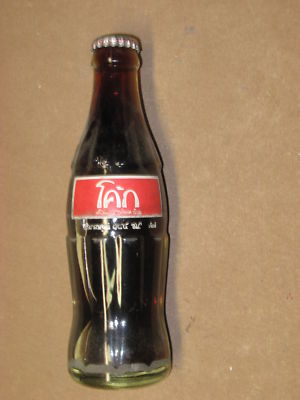 Title (ebay affiliate link): Coca Cola Asian UNOPENED FULL Bottle from mid 80's COKE
