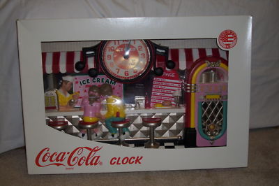 Title (ebay affiliate link): NEW Horloge Collectible Coke Coca Cola Ice Cream Soda Shop Wall Clock NIB MINT