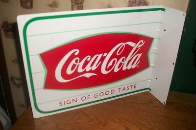 Title (ebay affiliate link): Vintage Coca Cola Fishtail Sign Of Good Taste Double Sided Flange Sign