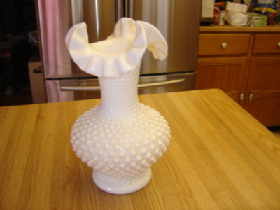 VINTAGE WHITE MILK GLASS HOBNAIL ART VASE