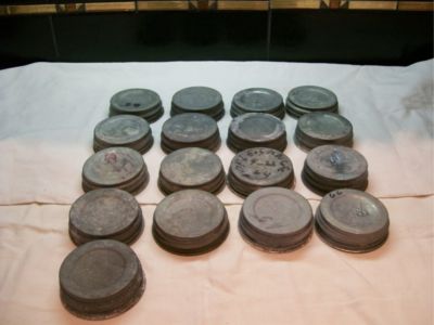 Lot 17 Vintage Ball Jar Zinc Lids with Milk Glass - 4 numbered