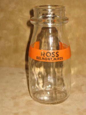 Vintage half pint ROSS BELMONT, MASS. Glass Milk Bottle