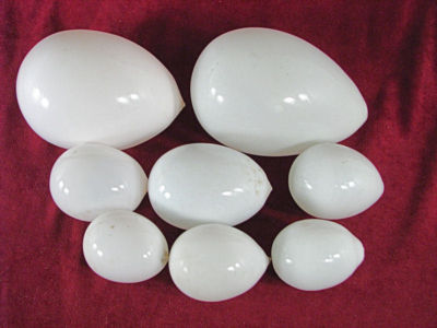 Total of Eight 8 Milk Glass Blown Eggs, Different Sizes
