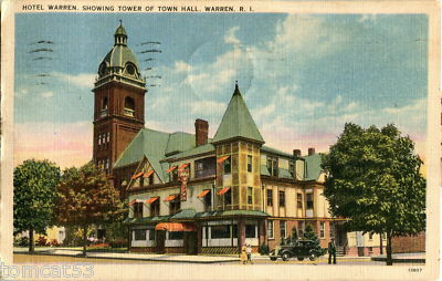 Title (ebay affiliate link): Hotel Warren showing Tower of Town Hall, Warren, Rhode Island - Linen / 1938