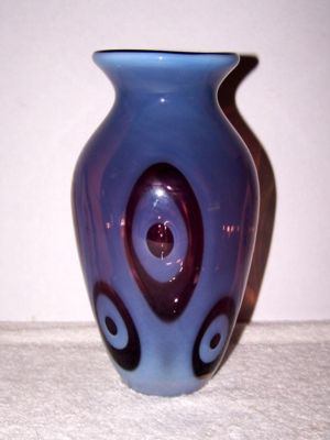 Title (ebay affiliate link): Fenton International 8 3/4" Amethyst Opaque Milk Glass Vase w/ Ovals Blue Purple