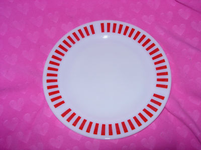 Vintage Hazel Atlas 9" Milk Glass Plate with Red Stripes