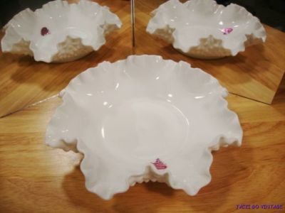 Vintage RETRO Fenton White Opaque Hobnail Ruffle Top Milk Glass Bowl NOS