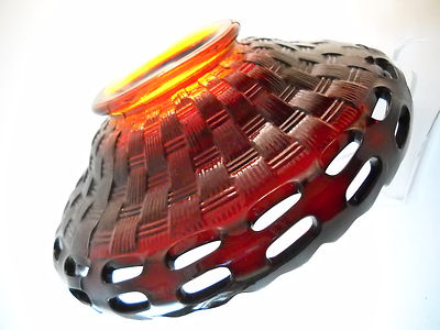 BEAUTIFUL RUBY GLASS BASKETWEAVE BOWL