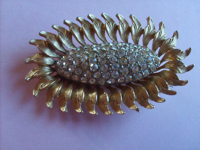 Title (ebay affiliate link): Antique Har Golden Rhinestone Sunflower Design Brooch