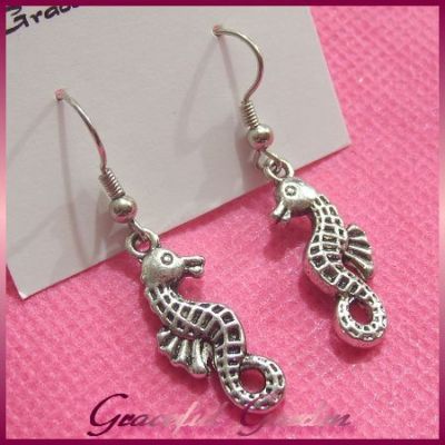Title (ebay affiliate link): ER2452 Vintage Design Antique Silver Tone Sea Horse Charm Dangle Hook Earrings