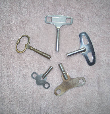 5 VINTAGE MANTEL SHELF CLOCK KEYS, ANTIQUE CLOCK KEYS