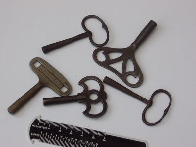 5 ASSORTED ANTIQUE STEEL CLOCK KEYS