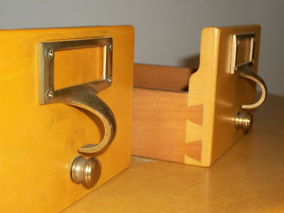 Title (ebay affiliate link): Two Library Card Catalog Drawers with Brass Pulls
