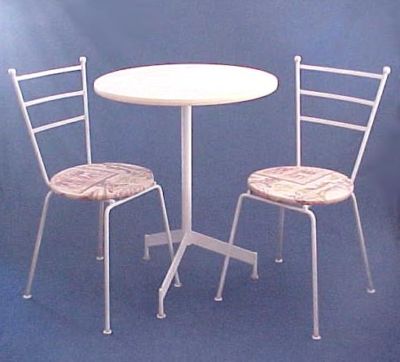 Title (ebay affiliate link): early 1950's WHITE WROUGHT IRON SET OF 2 CHAIRS & PATIO/TERRACE BISTRO TABLE