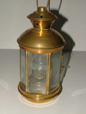 VINTAGE ENGLISH BRASS AND GLASS HANGING OIL LAMP