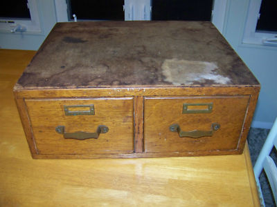 Title (ebay affiliate link): Antique Library Card Catalog Index File 2 Drawer Tiger Oak Dovetail Early