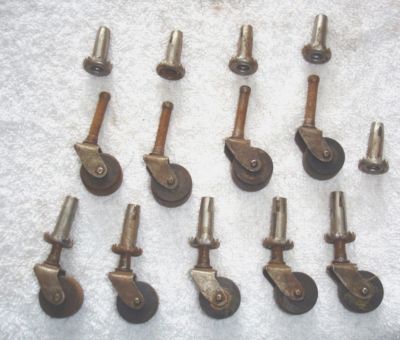 Title (ebay affiliate link): SET OF 9 WOOD WHEELS AND METAL ANTIQUE FURNITURE CASTERS W WHEEL HOUSINGS