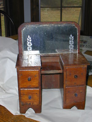 Title (ebay affiliate link): Antique Hand made Vanity Dresser Folk Art Large Doll Furniture Wood