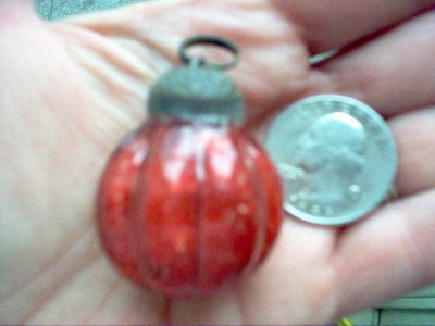 SMALL VINTAGE COPPER MERCURY CRACKLE GLASS MELON KUGEL BALL ORNAMENT 1-1/4" TL