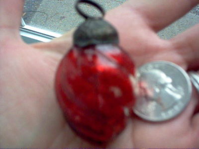 Title (ebay affiliate link): SMALL VINTAGE RED MERCURY CRACKLE GLASS TWIST ACORN KUGEL ORNAMENT 1-3/4" TL