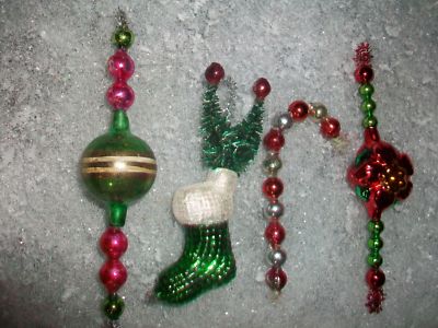 Vintage Japan & Radko Beaded Mercury Glass Icicle Feather Tree Ornaments
