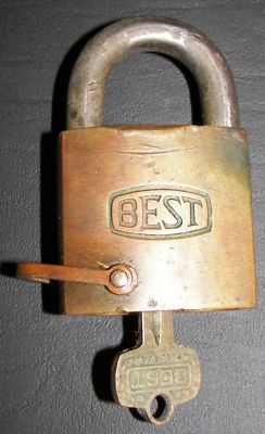 Vintage Brass BEST Lock F310 with Chain Hook and Key