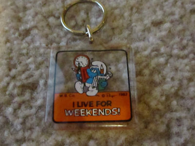 Smurf VINTAGE keychain collectible 1982 "I LIVE FOR WEEKENDS!" EUC hot item RARE