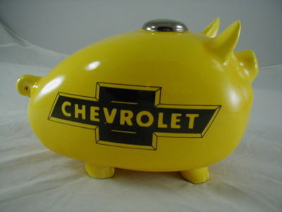Title (ebay affiliate link): RARE CHEVY CHEVROLET BOW TIE ~ VINTAGE POTTERY GLAZED 1980's PIGGY BANK ~ MINT