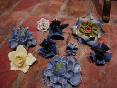 LOT ~ 9 Shabby Chippy Antique Toleware Painted Porcelain Cottage Roses Flowers