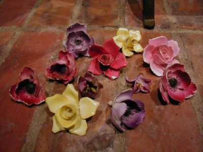 LOT ~ 11 Shabby Chippy Antique Toleware Painted Porcelain Cottage Roses Flowers
