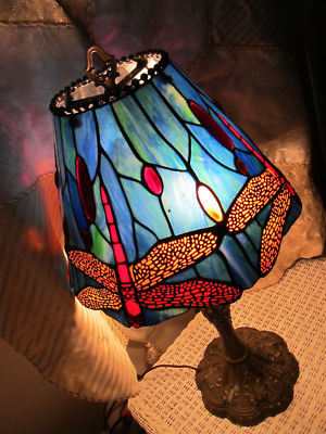 DRAGONFLY STAINED GLASS TABLE LAMP AND GLASS SHADE 27.5" TALL