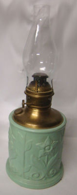 ANTIQUE PLUME & ATWOOD OIL LAMP GREEN POTTERY BOTTOM INSERT