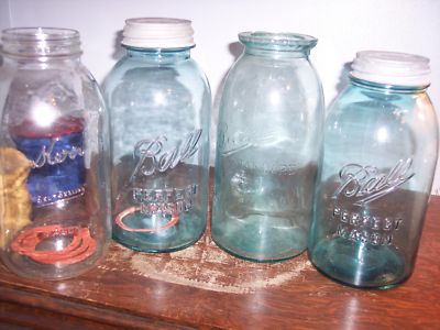 LOT OF 15 VINTAGE BALL JARS SOME WITH ZINC LIDS