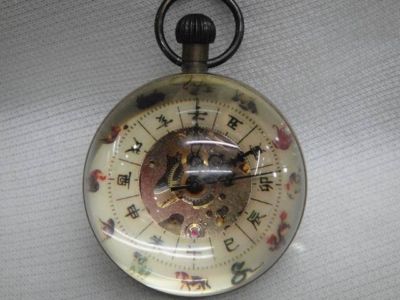 Work CHINESE OLD BRASS GLASS pocket watch BALL clock