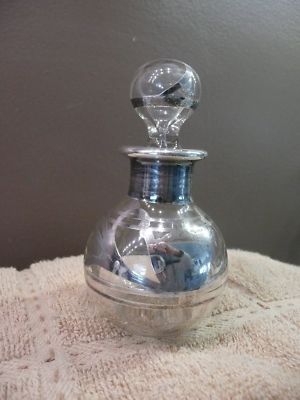 Antique Sterling Silver Overlay Perfume Bottle w/ Stopper