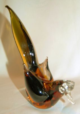 Title (ebay affiliate link): Vintage Gorgeous Amber Art Glass Exotic Bird Figurine Paper Weight