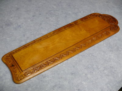 Title (ebay affiliate link): 1928 Folk Art Carved Wood Monogrammed H Cheese Cutting Board Knife Rest
