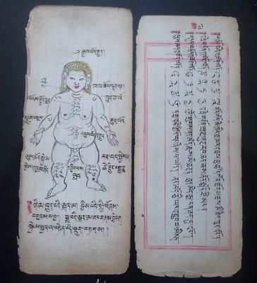 Mongolian Antique Buddhist OLD Anatomy Paint 18c- 19c