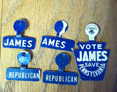 Title (ebay affiliate link): 5 Vintage Arthur James for governor republican political pins