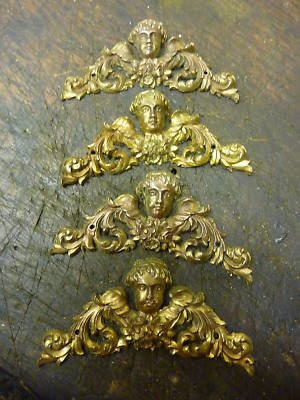 GOOD SET (4) ANTIQUE BRACKET CLOCK SPANDRELS