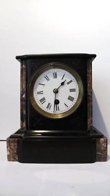 ANTIQUE VICTORIAN MANTLE CLOCK BLACK ONYX MARBLE NICE