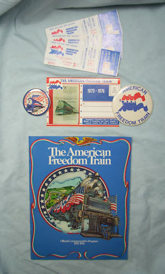 American Freedom Train Memorabilia Medal, Postcards, Program, Tickets, Pinbacks