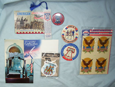 Title (ebay affiliate link): Bicentennial 1776-1976 Memorabilia Pinbacks Decals Calendar, Bookmark, Envelope