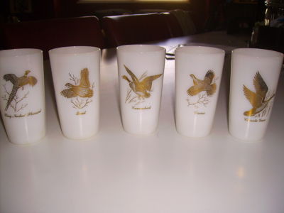 FEDERAL WHITE MILK HUNTING DRINKING GLASSES LOT OF 5
