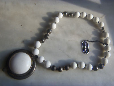 Title (ebay affiliate link): VINTAGE SIGNED DAUPLAISE SILVER PLATED MILK GLASS CHUNKY NECKLACE W ORIGINAL TAG