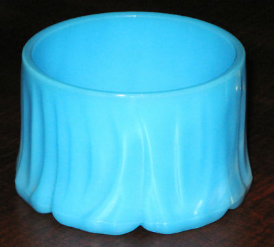 Title (ebay affiliate link): BLUE MILK GLASS JAR; TREE TRUNK OR DRAPERY PATTERN; MADE IN USA