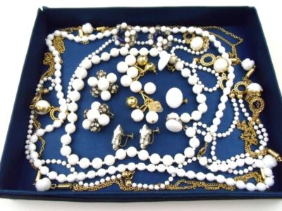 Title (ebay affiliate link): Gorgeous Vintage Milk Glass Jewelry Lot~Rhinestones~Rhondelles~LCi~Japan~Napier