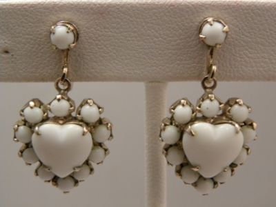 VINTAGE MILKGLASS HEART DANGLE EARRINGS