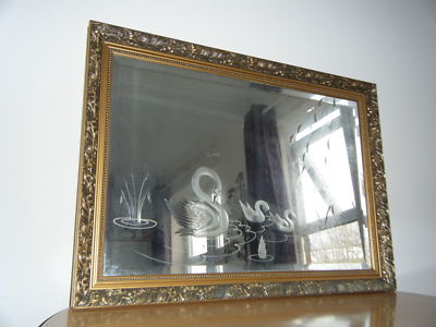 Title (ebay affiliate link): STUNNING GOLD GILT ORNATE VINTAGE SWAN ETCHED BEVELLED WALL MIRROR