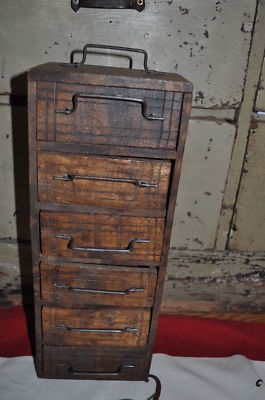 Primitive, Antique, Wooden, Hand Made, Six Drawer, Counter Top Cabinet